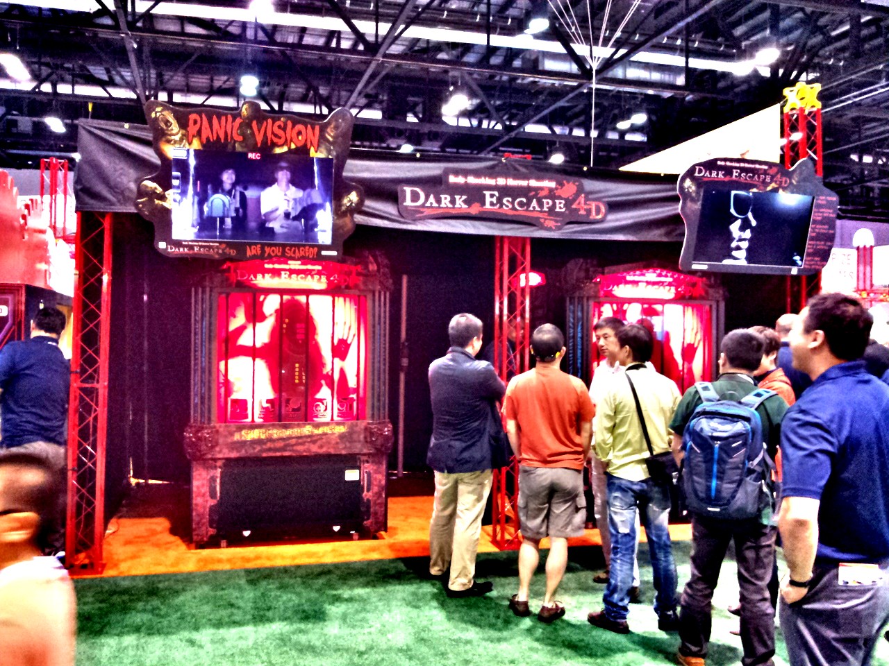 Мерзкие зомби, вампиры, вурдалаки и прочая нечисть свободно резвилась на стенде Bandai Namco Games. Ранее я уже подробно описывал Dark Escape. На выставке IAAPA в Орландо этот аппарат собрал огромное количество посетителей, которые желали испытать свою храбрость.