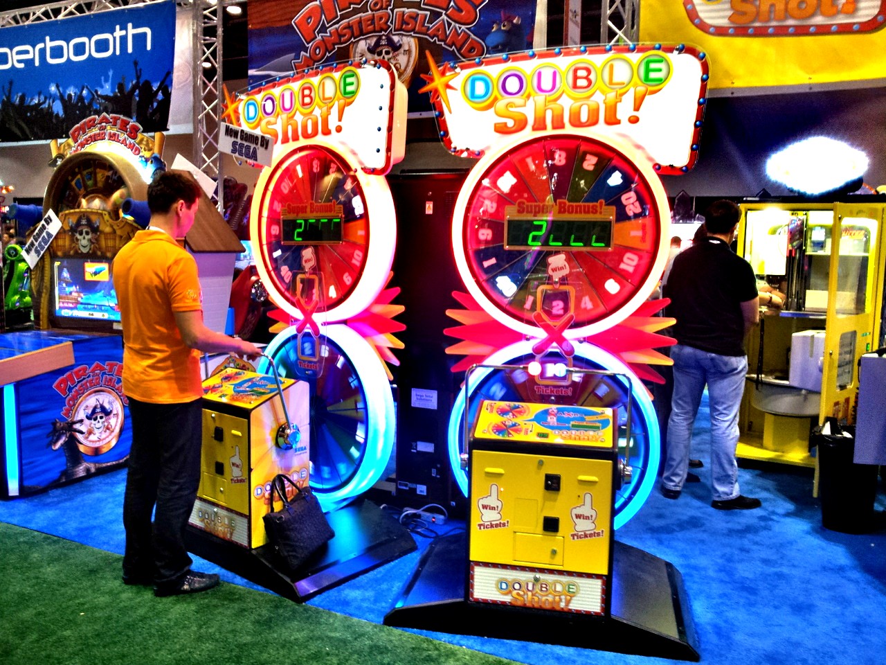 На выставке IAAPA стенд американского производителя ICE порадовал нас новым редемпшен аппаратом Milk Jug Toss, квиккоином (жетонником) Penalty Kick, мерчендайзером Cut the Rope и видео-редемпшн Doodle Jump.